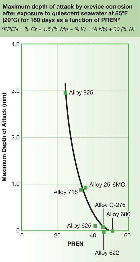 * (Pren) = %CR + 1.5 (%Mo + %W + %Nb) + 30 (%N)