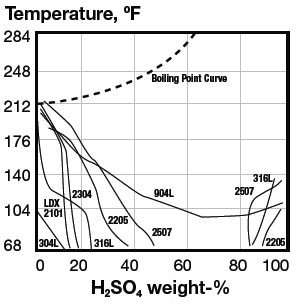 Isocorosion curves, 0.1 mm/year, in sulfuric acid